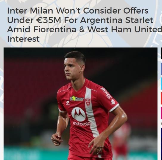 这位阿根廷年轻中场球员目前被国米租借去到了蒙扎,最近几周,关于卡尔博尼的转会兴趣激增,其中佛罗伦萨、西汉姆联和布伦特福德均对他有意,但国米方面不会考虑对这位年轻的攻击型中场低于3500万欧元的报价。