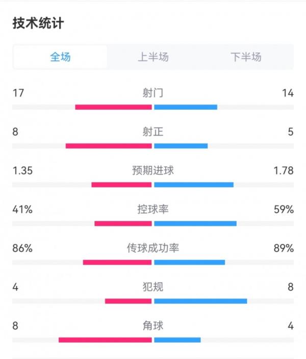 5月11日讯 本轮意甲,国米5-0客胜弗洛西诺内。双方全场重点数据对比如下↓(主队弗洛西诺内在前)