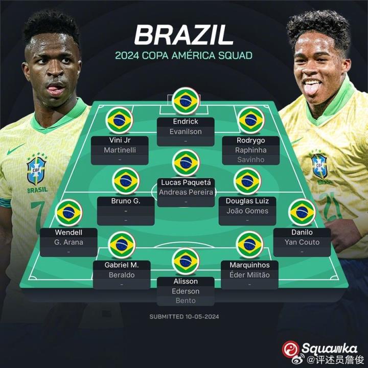 5月11日讯 巴西队公布了美洲杯23人大名单,维尼修斯、罗德里戈领衔,新星恩德里克入选,詹俊对此发表了自己的点评。