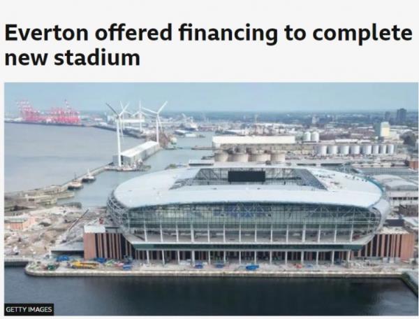 相关阅读:太阳报:埃弗顿新球场债务5.391亿镑急需融资,能否完工引担忧