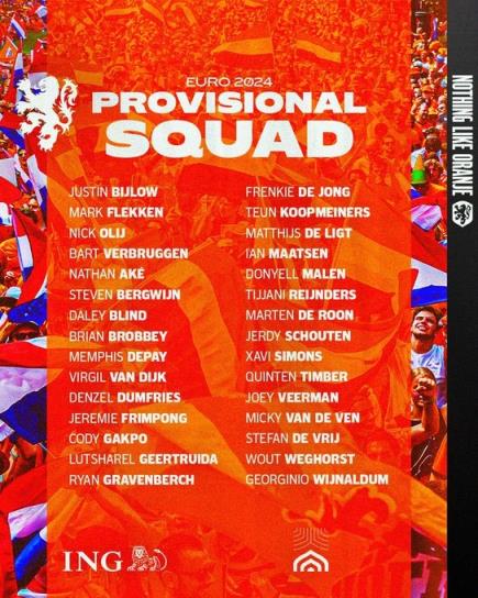 05月17日讯 荷兰公布欧洲杯初选30人大名单,范迪克、德容、德里赫特等人入选。
