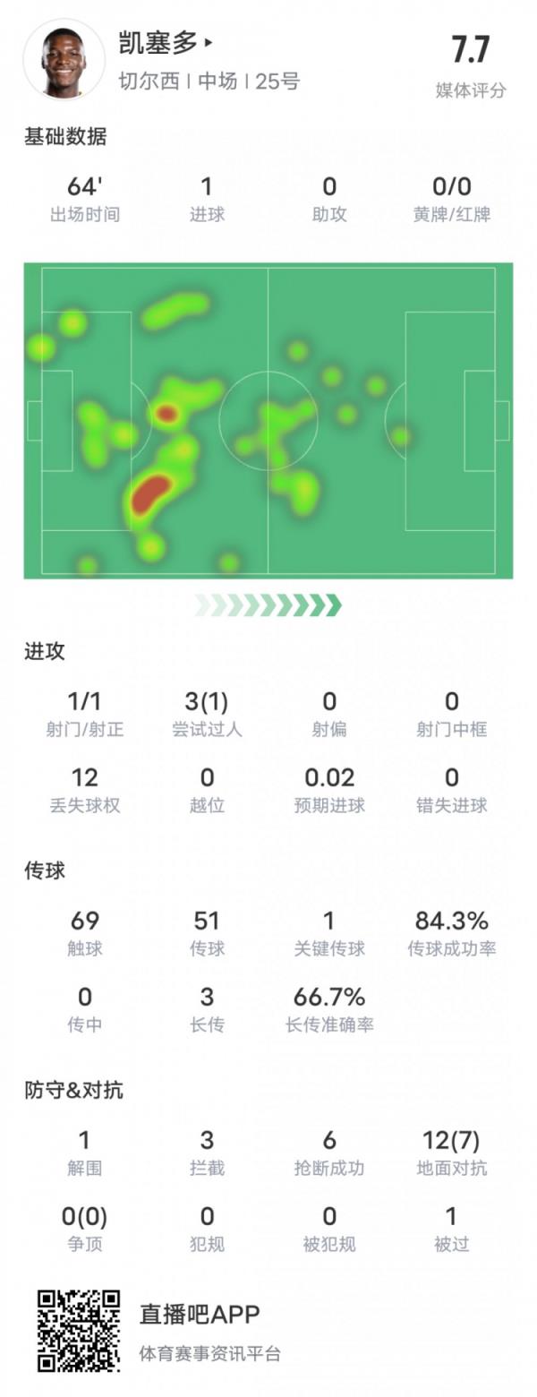 凯塞多本场比赛数据: