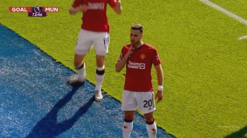 5月20日讯 英超收官战,布莱顿vs曼联。比赛第73分钟,曼联取得领先!卡塞米罗后场长传,霍伊伦助攻达洛特单刀破门,曼联客场1-0领先布莱顿!