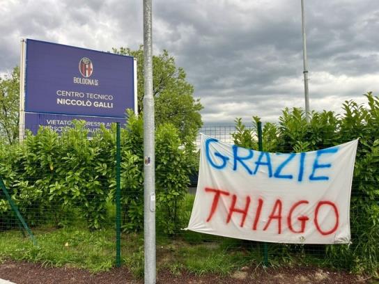 5月23日讯 蒂亚戈-莫塔即将离开博洛尼亚,博洛尼亚球迷拉横幅致谢。