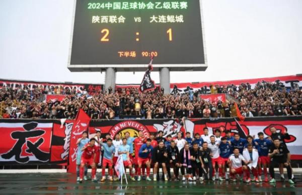 最终全场比赛结束,陕西联合主场2-1战胜大连鲲城,巩固了中乙联赛北区榜首之位!