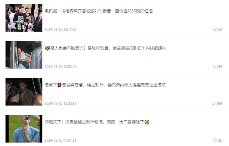 上周日曼城顺利拿下英超冠军,赛后球队多人前往酒吧狂欢,格拉利什、德布劳内、哈兰德等人被拍到摇摇晃晃走出酒吧,本场比赛曼城球员多人不在状态,屡次出现失误,许多球迷也调侃曼城众将上周喝的酒还没醒。