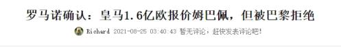 2021年夏天,皇马多次报价姆巴佩,都被巴黎拒绝↓