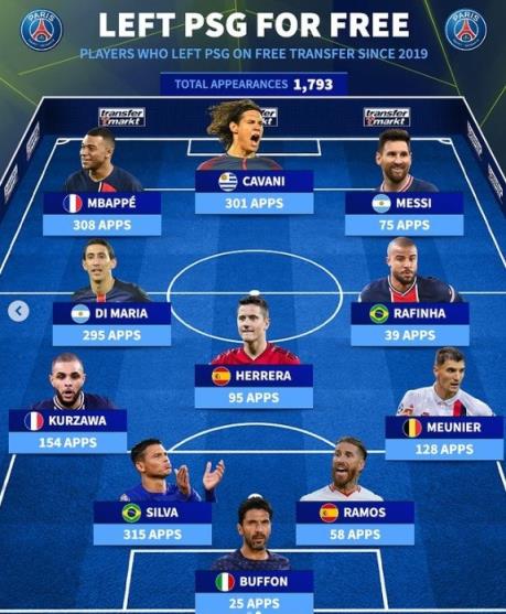 德转列近5年巴黎免签离队阵:共计为巴黎出战1793场比赛