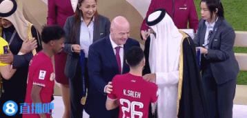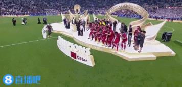 赛后卡塔尔全队领取冠军奖牌,队长海多斯身披2022世界杯冠军的同款黑袍,捧起亚洲杯冠军奖杯!