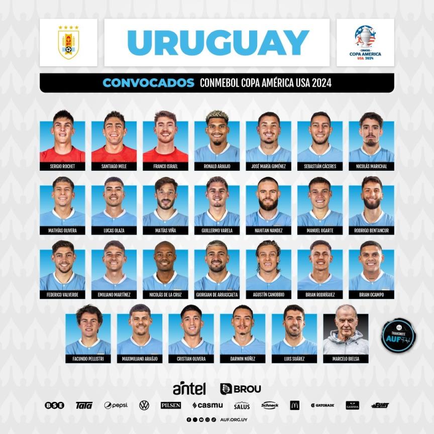 乌拉圭美洲杯26人大名单