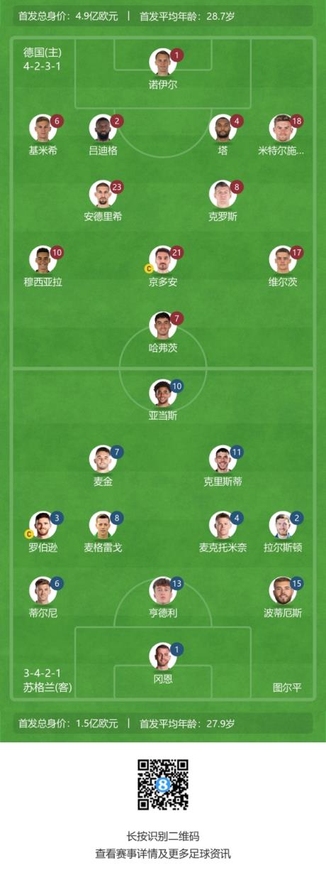 6月15日讯 北京时间6月15日3点,欧洲杯揭幕战在德国慕尼黑竞技场打响,A组东道主德国对阵苏格兰。赛前首发名单公布。