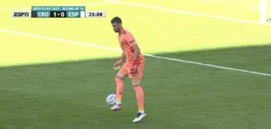 上届欧洲杯1/8决赛克罗地亚vs西班牙。比赛第20分钟,佩德里回传,西班牙门将乌奈-西蒙停球失误,皮球滚入球网。西班牙0-1落后。