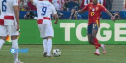 第45+2分钟,西班牙右侧角球机会,战术角球开出,随后亚马尔将球送向禁区,卡瓦哈尔抢点垫射破门,西班牙3-0克罗地亚。↓