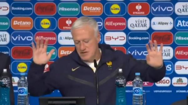 6月17日讯 法国队将在欧洲杯首轮迎战奥地利,赛前,法国主帅德尚出席新闻发布会。