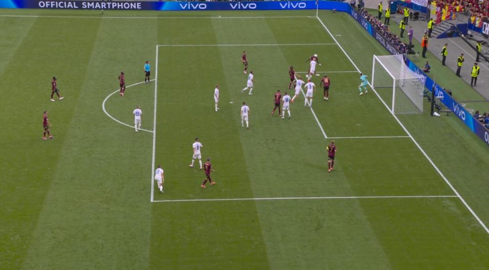回放显示,奥纳纳头球摆渡瞬间,卢卡库处在越位位置,越了半个身位。