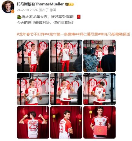 穆勒更新微博,为中国球迷送上龙年祝福。