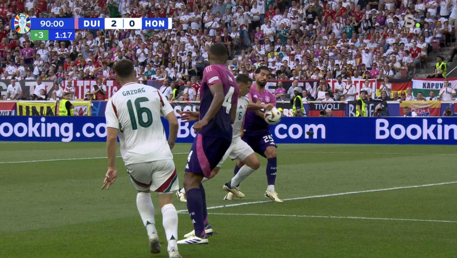 06月20日讯 德国vs匈牙利最后阶段,匈牙利球员示意埃姆雷詹手球,主裁判无表示,随后听VAR后维持原判。最终德国2-0完胜匈牙利。