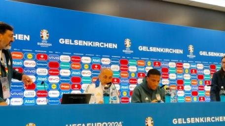 6月19日讯 意大利队将在欧洲杯小组赛第二场迎来西班牙队的挑战,赛前,意大利主帅斯帕莱蒂出席新闻发布会。