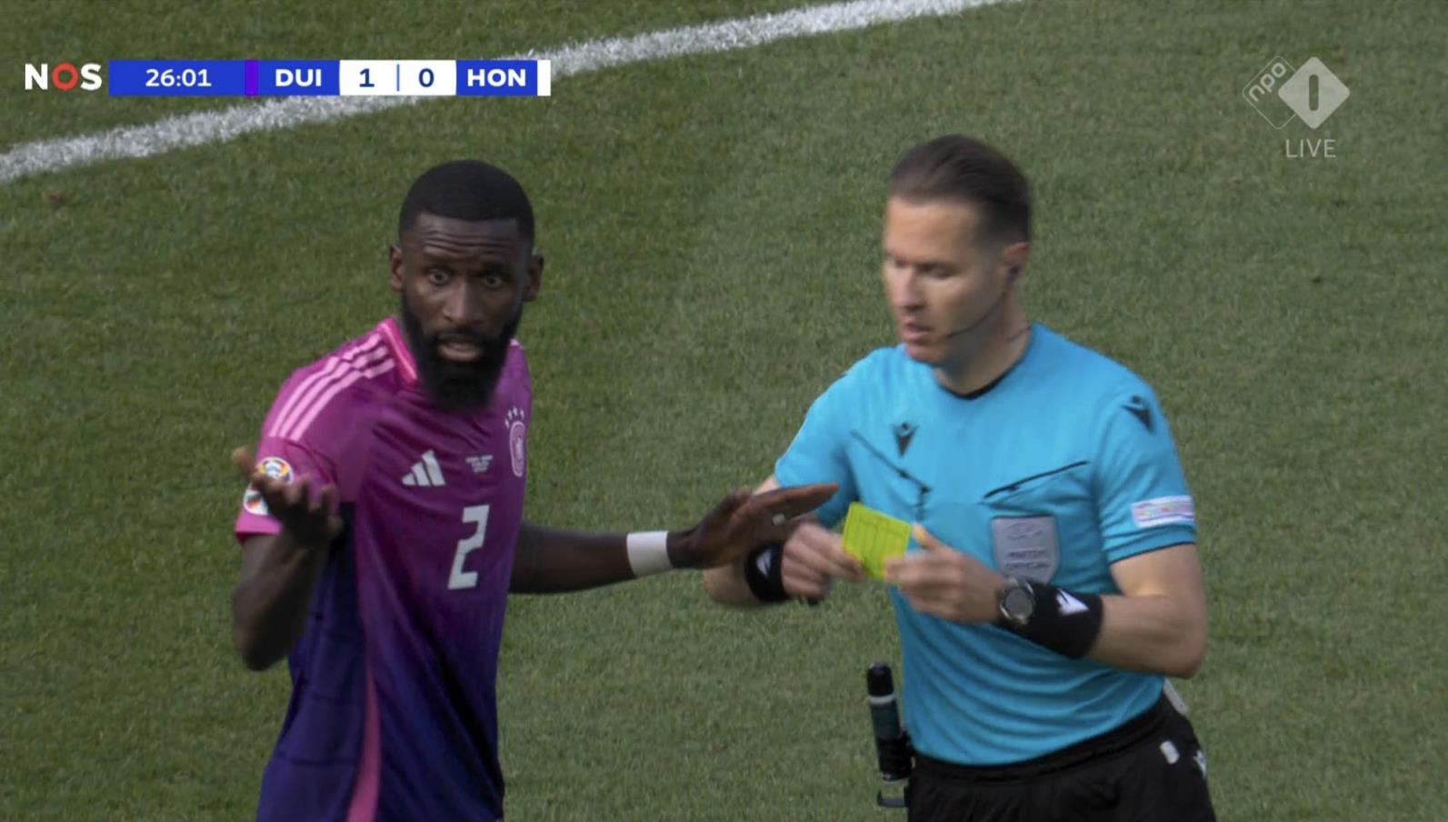 怎么回事吕迪格似乎是未经允许返回球场,吃到黄牌一张