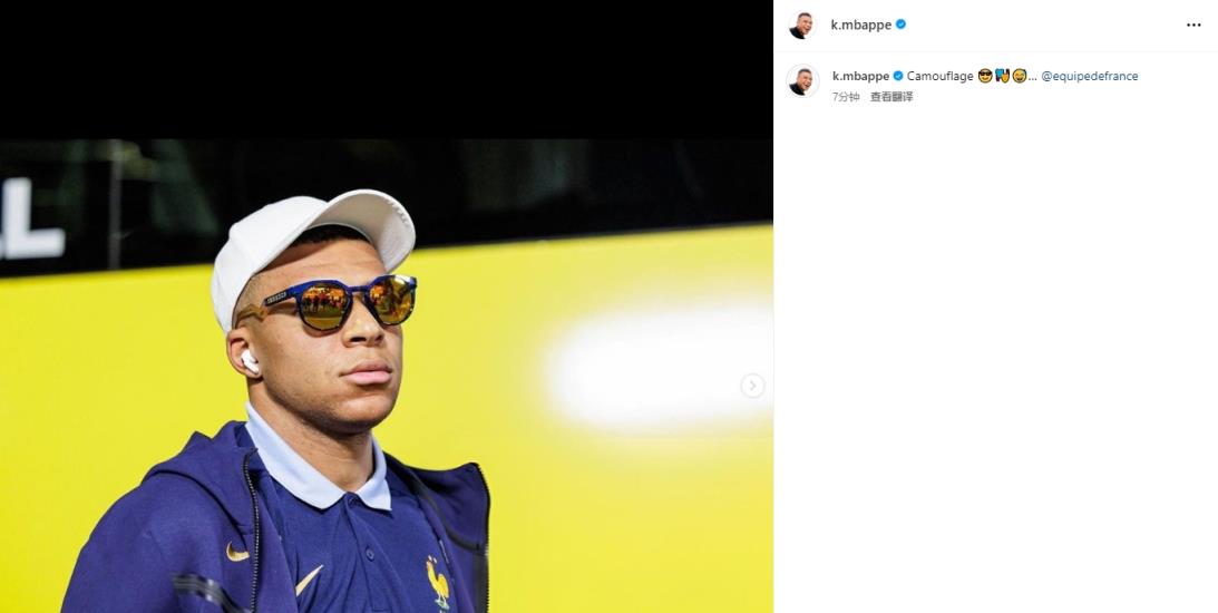 06月21日讯 姆巴佩社媒晒照,分享了自己最新的面具并配文:“伪装,
