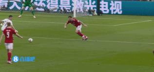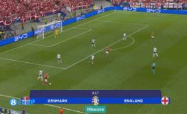 第34分钟,丹麦组织进攻,尤尔曼德禁区外突施冷箭,右脚远射,皮球直入死角,击中门柱内侧弹入网窝,丹麦扳平比分,丹麦1-1英格兰!↓