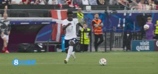 06月21日讯 欧洲杯小组赛C组第2轮,丹麦vs英格兰。比赛第27分钟,英格兰反击机会,萨卡中场拿球,维斯特高将其放倒,裁判吹罚犯规并出示黄牌。