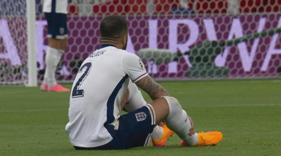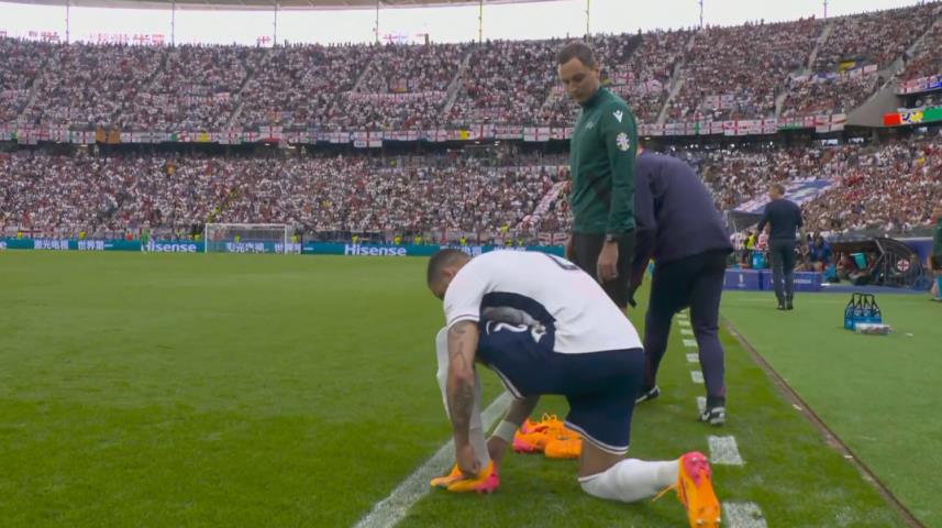 06月21日讯 欧洲杯小组赛C组第2轮,丹麦vs英格兰。比赛第9分钟,英格兰控制球权,沃克突然坐在场上,队医进场了解情况。随后沃克下场更换球鞋后回到场上。