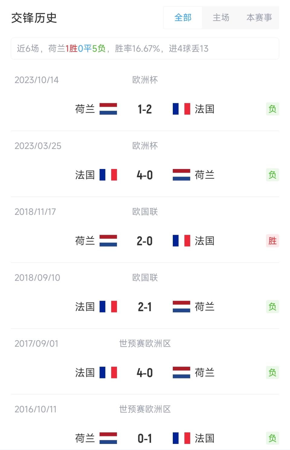 6月22日讯 北京时间凌晨3:00,欧洲杯小组赛D组第二轮焦点战,荷兰vs法国将在莱比锡红牛竞技场打响,赛前首发名单公布。