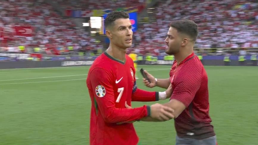 06月23日讯 欧洲杯F组第2轮,土耳其vs葡萄牙。比赛最后时刻,大局已定,葡萄牙3-0领先,四度出现球迷冲入场内的情况。