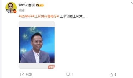 中场评述员詹俊更新社媒,晒出自己经典经典的表情包,配文:上半场的土耳其……