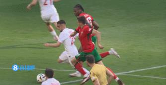 第42分钟,阿卡丁连球带人铲倒莱奥,吃到黄牌↓