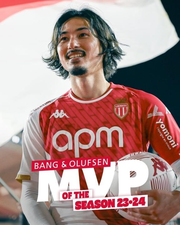 摩纳哥官方公告写道:“直接参与进球15个,日本球员南野拓实获得42%的球迷投票,当选摩纳哥2023/24赛季MVP。共有7名球员获得提名,南野拓实总共获得552张投票,领先第二名戈洛文的471张投票。”