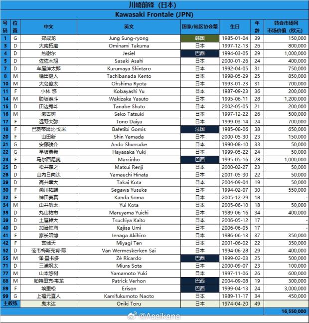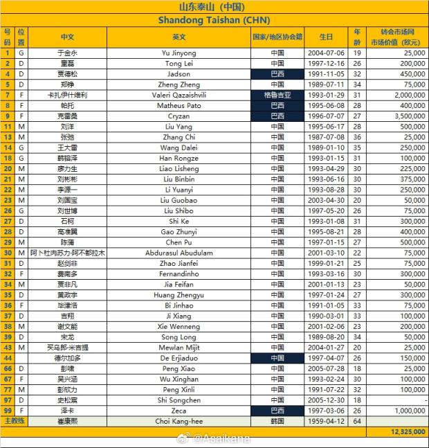 2023-24亚冠淘汰赛 山东泰山vs川崎前锋 报名名单详细版