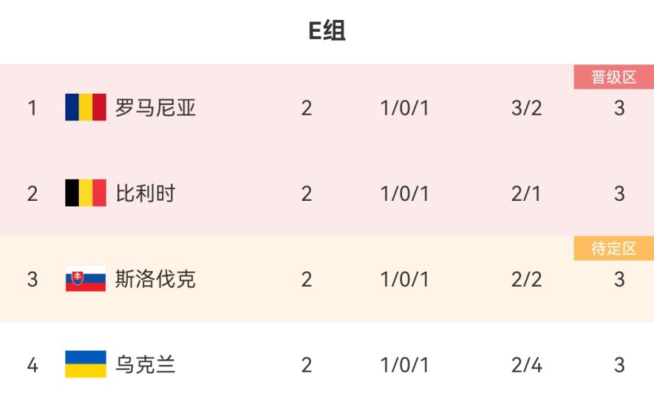 E组目前积分榜