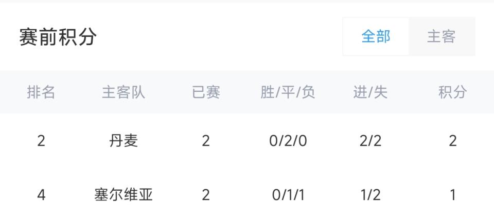 小组赛前两战中,丹麦2连平积2分,位居C组第2位;塞尔维亚1平1负积1分,位居C组第4位。