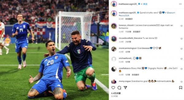 6月26日讯 意大利在昨晚的欧洲杯焦点战1-1绝平克罗地亚,扎卡尼替补建功。