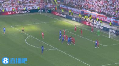 第34分钟,泽林斯基左路送出传中,莱万头球攻门,这球萨利巴稍微蹭到,球出了底线,不过裁判判给法国队球门球。↓