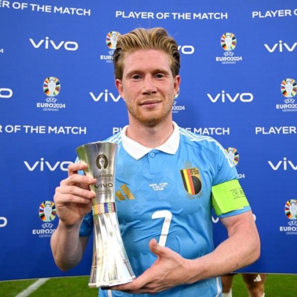 赛后,欧足联官方宣布,德布劳内当选全场最佳球员,连续两轮获评MVP。