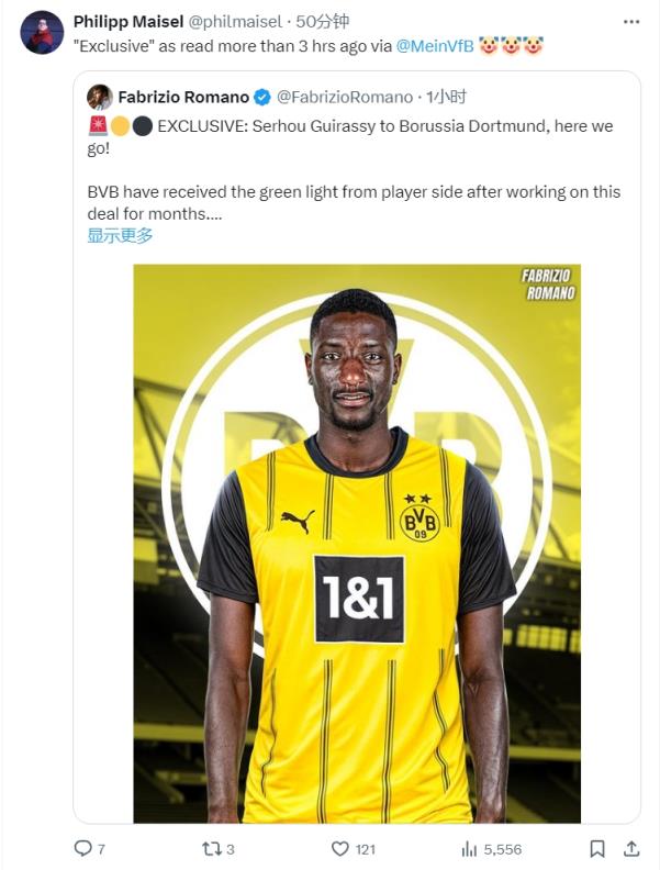 对此,《斯图加特新闻报》跟队记者Philipp Maisel发推回怼,这是自己三个小时前发布的消息,并讽刺了罗马诺的“独家”。