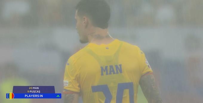 斯洛伐克vs罗马尼亚,上半场艳阳高照,热到双方进行补水暂停;下半场风云突变暴雨倾盆。