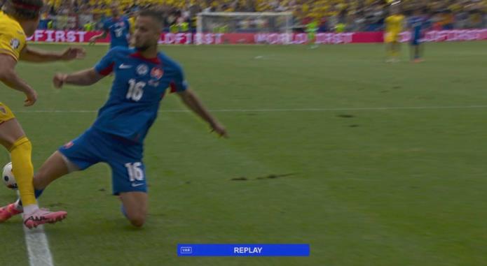 06月27日讯 欧洲杯小组赛E组第3轮,斯洛伐克vs罗马尼亚。上半场比赛两队战成1-1平,第37分钟罗马尼亚凭借一个争议点球扳平比分,这个点球的判罚也引发了球迷的热议。