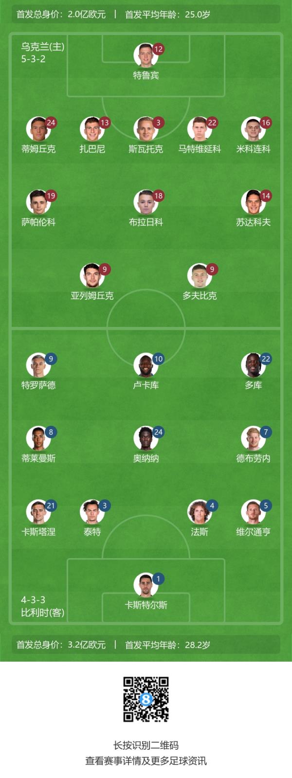 乌克兰替补:1-布什坎、23-卢宁、2-科诺普利亚、4-塔洛维尔罗夫、5-塞多尔丘克、6-斯特帕年科、7-亚尔莫连科、8-马利诺夫斯基、10-穆德里克、15-齐甘科夫、17-津琴科、20-祖布科夫、21-邦达尔、25-瓦纳特、26-米哈伊利琴科