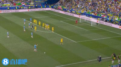 第33分钟,德布劳内主罚任意球想象力迸发!直接远距离射门,稍稍偏出击中了边网↓