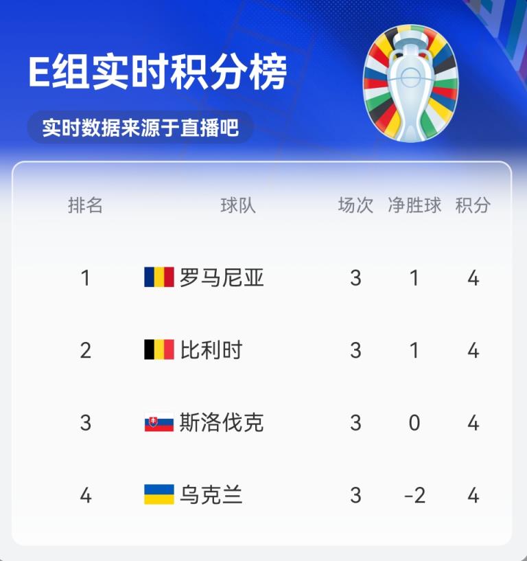 06月27日讯 欧洲杯E组末轮两场比赛同时开打,斯洛伐克vs罗马尼亚,比利时vs乌克兰。