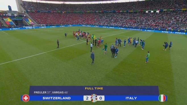 06月30日讯 2024欧洲杯首场1/8决赛,瑞士2-0击败意大利,晋级八强。