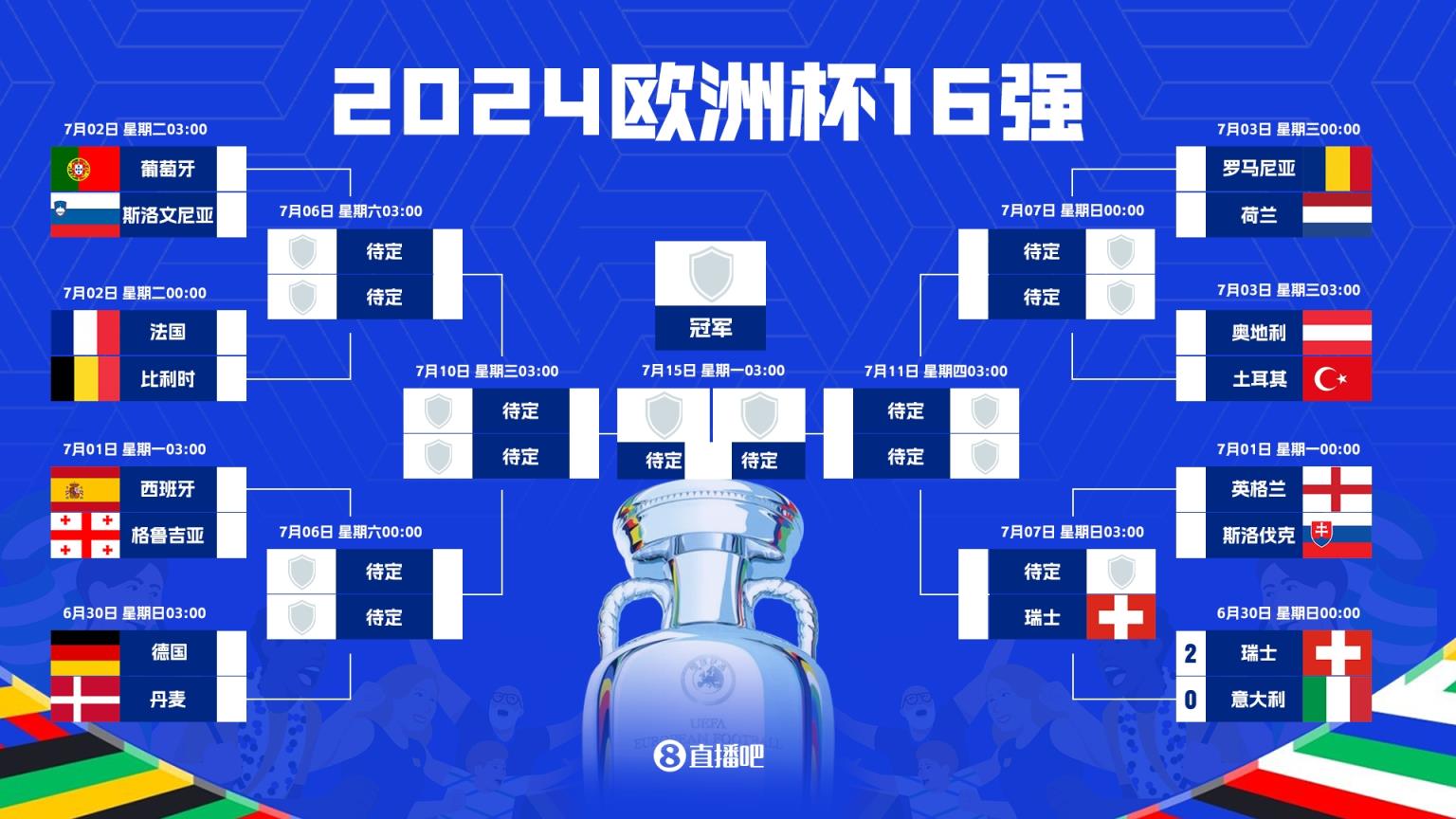 06月30日讯 欧洲杯1/8决赛,瑞士2-0淘汰意大利,将在1/4决赛中对阵英格兰vs斯洛伐克的胜者。