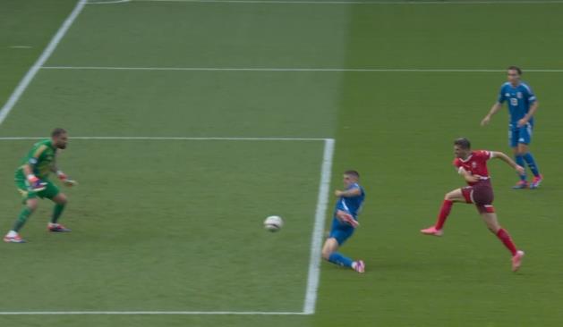 比赛第37分钟,巴尔加斯左路斜塞,插上的弗鲁勒无人盯防,一停一打凌空抽射,多纳鲁马碰到皮球仍无法阻止皮球入网,瑞士1-0领先意大利!