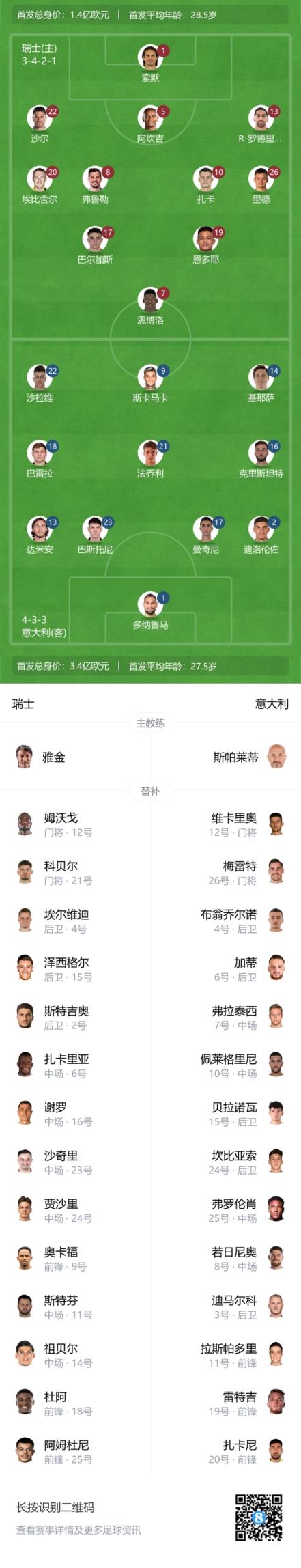 瑞士替补:12-姆沃戈、21-科贝尔、2-斯特吉奥、4-埃尔维迪、15-泽西格尔、6-扎卡里亚、16-谢罗、23-沙奇里、24-贾沙里、9-奥卡福、11-斯特芬、14-祖贝尔、18-杜阿、25-阿姆杜尼