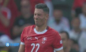 第45分钟,瑞士队右侧任意球,法比安-里德突施冷箭直接射门!多纳鲁马神扑救险,皮球被扑了一下击中立柱出了底线↓