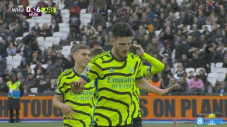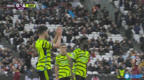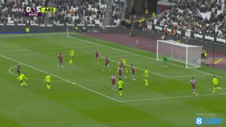 2月11日讯 英超第24轮,阿森纳客战西汉姆联,第65分钟赖斯对老东家打进超级世界波,阿森纳6-0领先。